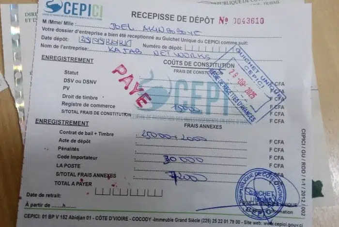 Nous venons à peine de déposer ce matin, les dossiers de création d’une nouvelle entreprise au CEPICI.