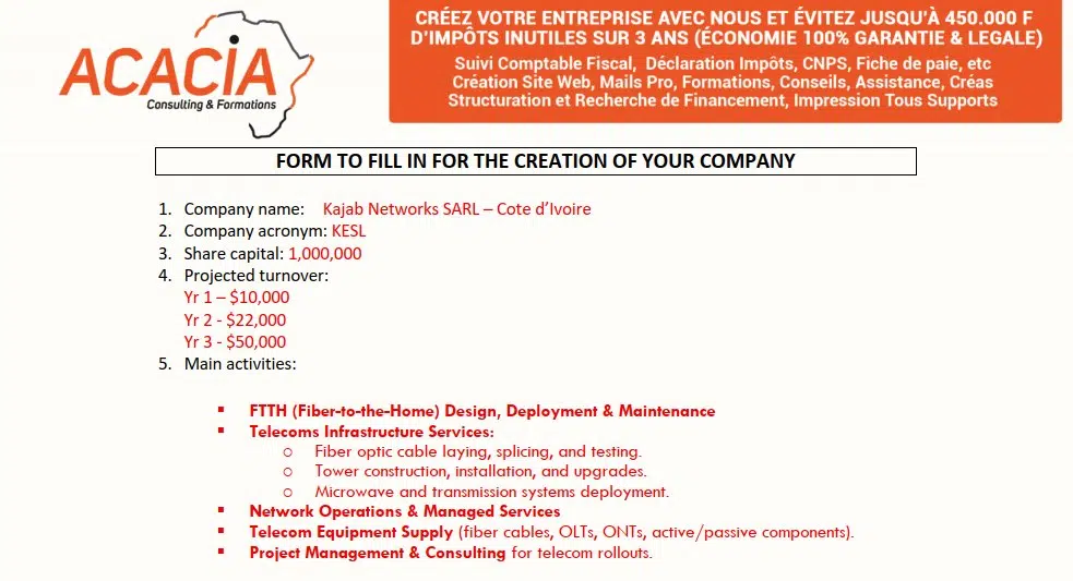 Il s’agit de l’entreprise KAJAB NETWORKS SARL – COTE D’IVOIRE, lancée par des entrepreneurs ambitieux depuis le Nigéria.