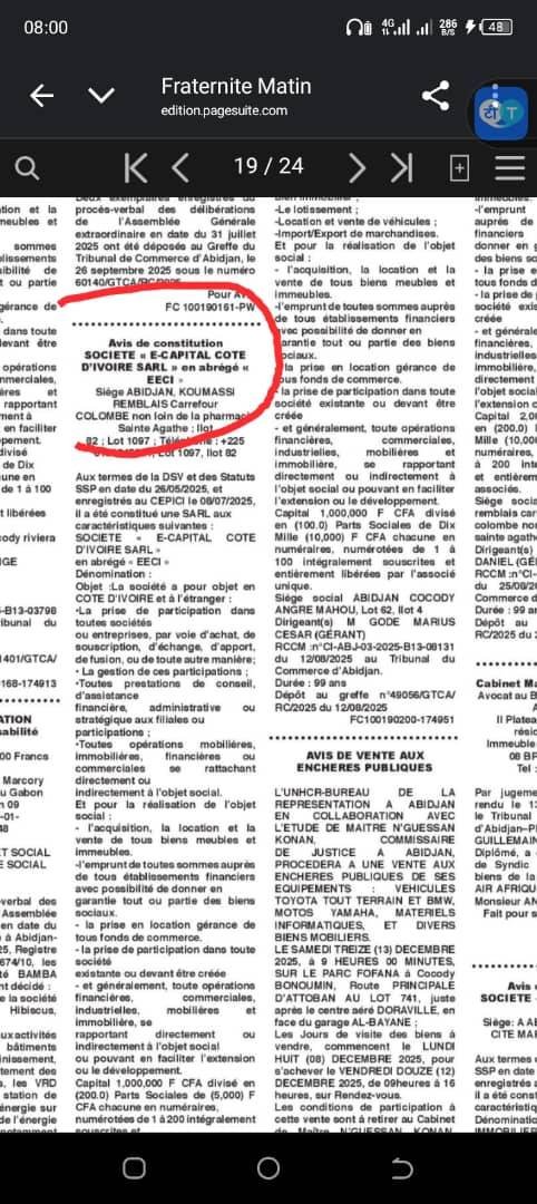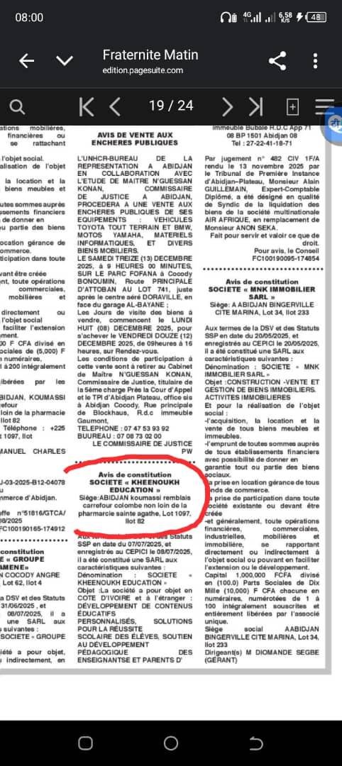 Hier, nous avons lancé la procédure d’apparition dans le journal officiel pour nos clients et c’est fait. Ils sont officiellement reconnus par l’état ivoirien
